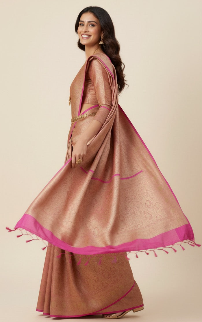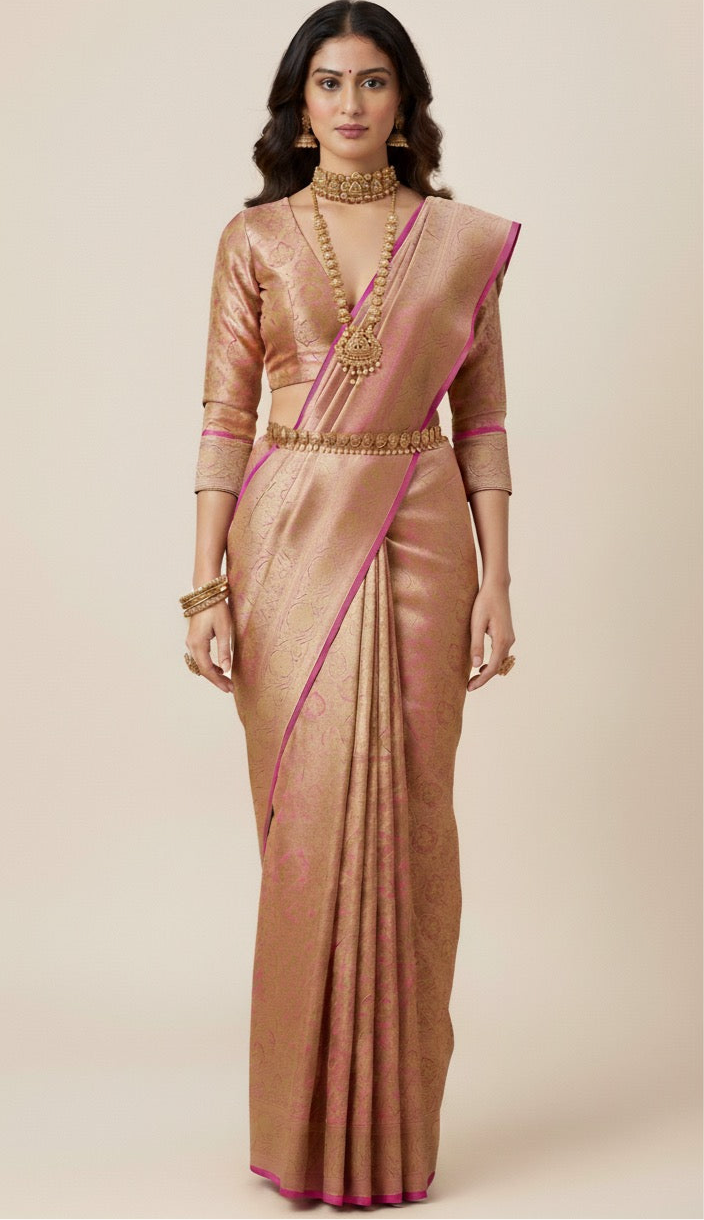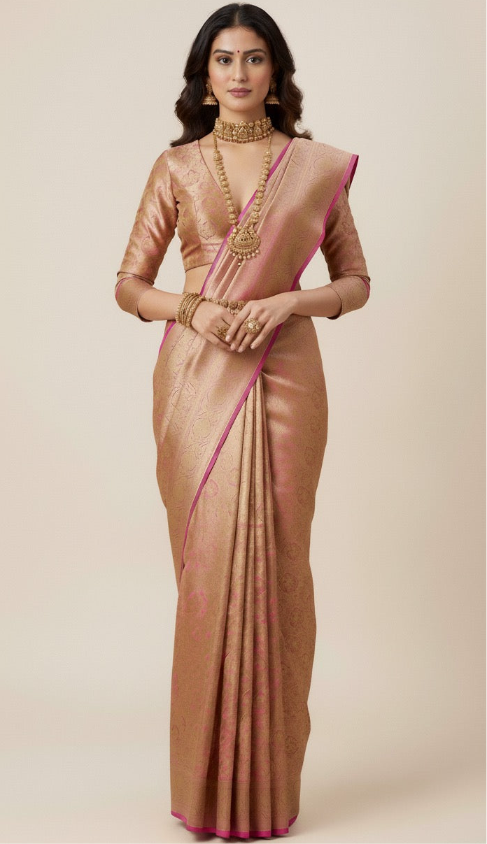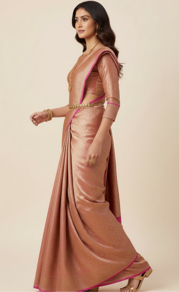 Radiating grace and opulence, this silver handwoven brocade silk saree is a statement piece that blends timeless tradition with modern elegance.